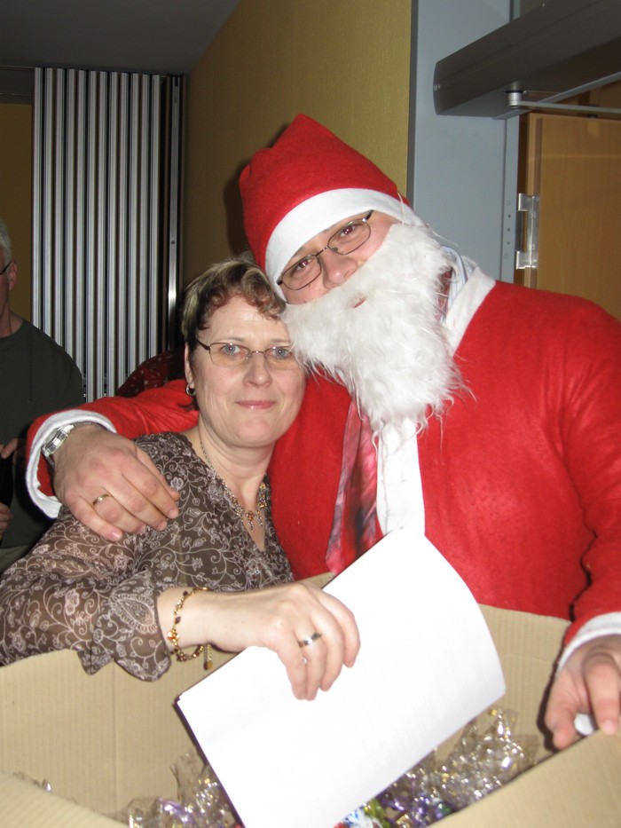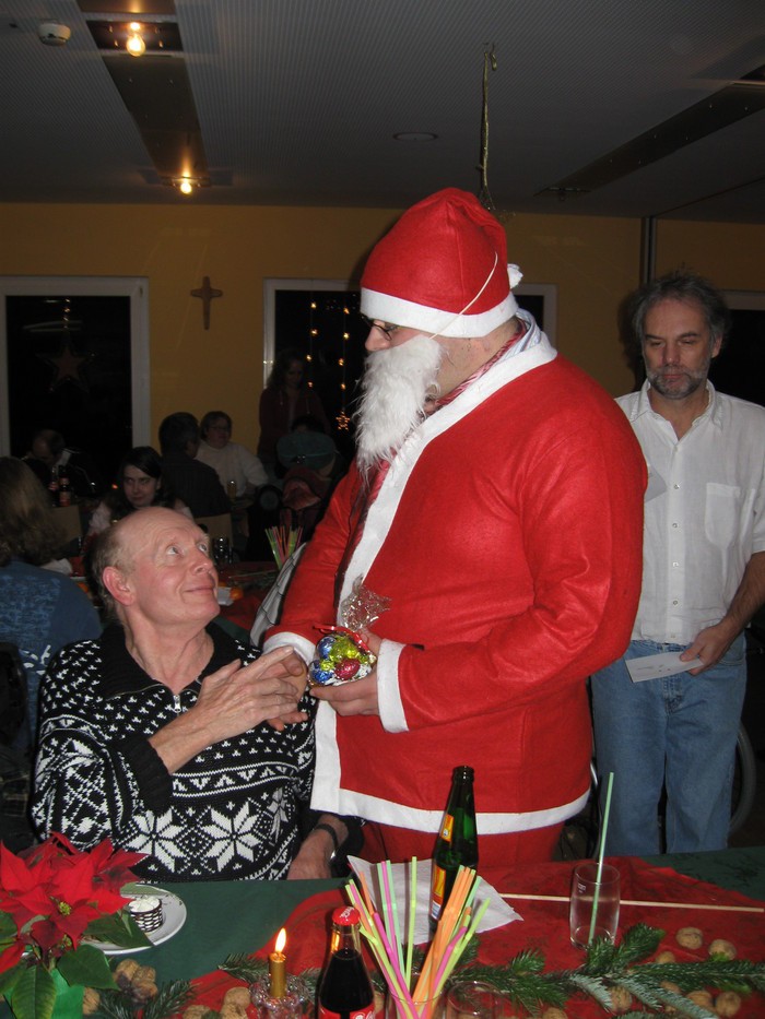 Zur Abrundung der Weihnachtsfeier stand dann noch die Bescherung bevor. Sfeffen Vetter verfolgte mit einem verschmitzen Lächeln das Geschehen. Er hatte sich eine besondere Überraschung ausgedacht und so trug ein von ihm gedichteter Vers bei jeder Geschenkübergabe durch den Weihnachtsmann Alexander zur allgemeinen Heiterkeit bei.