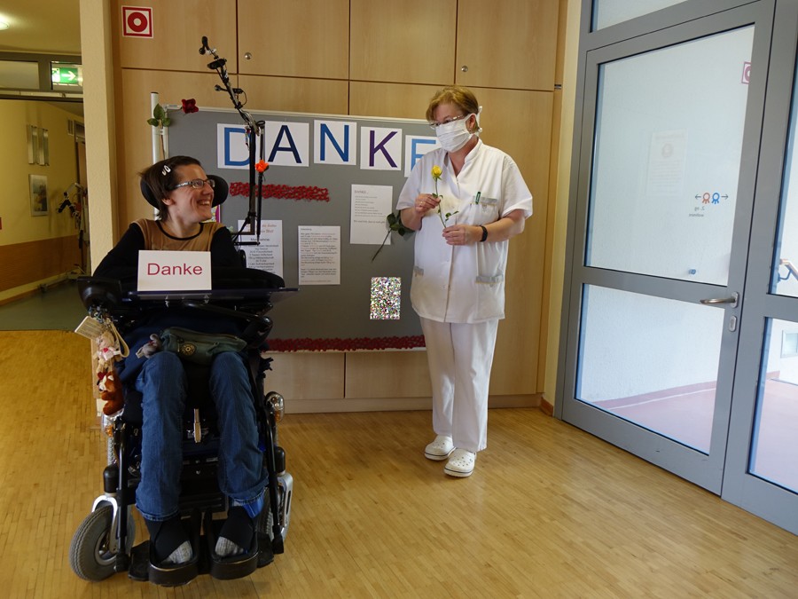 Nun war der besondere Tag gekommen, für den schon am frühen Morgen die erste Aufmerksamkeit geplant war. Die Bewohner, die als erstes versorgt wurden, überraschten unsere Pflegerinnen mit einer Rose.