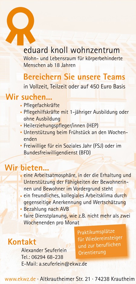 • Praktikumsplätze für Wiedereinsteiger und zur beruflichen Orientierung