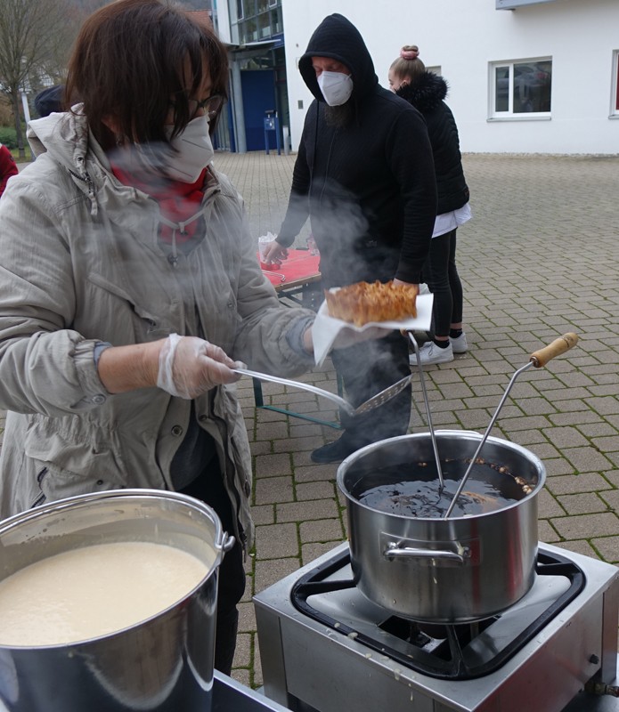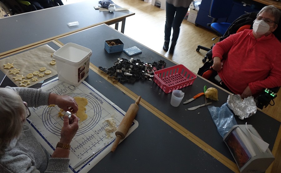Aber auch einige typische vorweihnachtliche Leckereien wollten wir uns dieses Jahr nicht nehmen lassen. So sollte niemand auf die traditionellen Rosenküchle verzichten müssen. Da aber coronabedingt ein Treffen im Hof nicht stattfinden konnte, gab es nur die Möglichkeit, die Küchle im Hof zu backen und anschließend so schnell wie möglich zum Kaffee in den Bewohnerzimmern zu servieren.