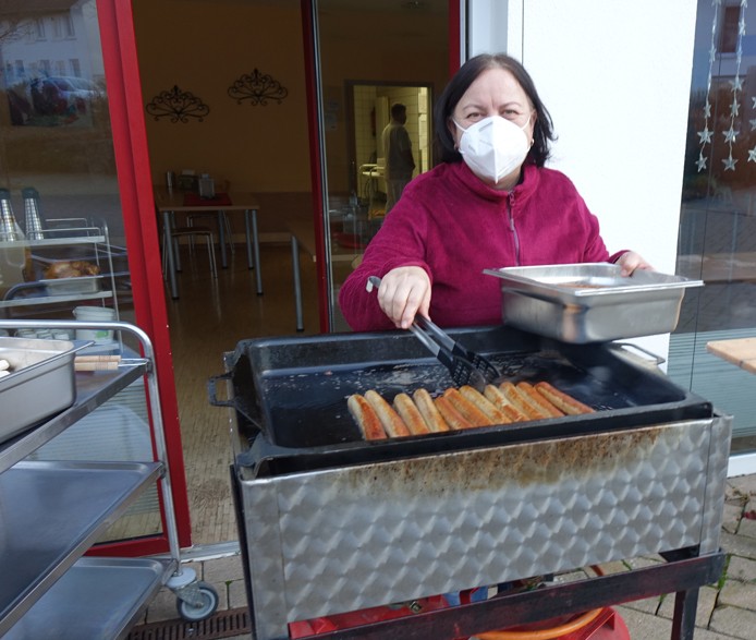 Da auch der Duft von Grillwurst und Glühwein unbedingt in den Dezember gehört, blieb auch da nur übrig, den Grill im Hof anzuwerfen und mithilfe von Wärmebehältern die Würste und Glühwein auf den Zimmern zu servieren.
