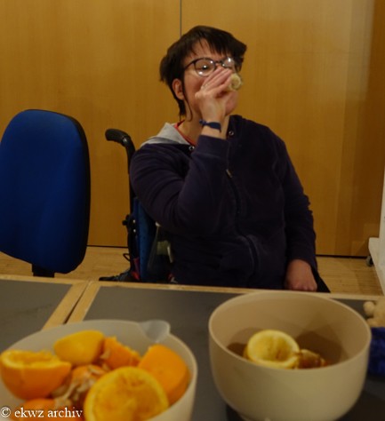 Tipp: Wenn man die Orangen bzw. Zitronen vor dem Aufschneiden mit Druck auf der Tischplatte ein paar Mal hin und her rollt, bekommt man mehr Saft aus dem Obst heraus.