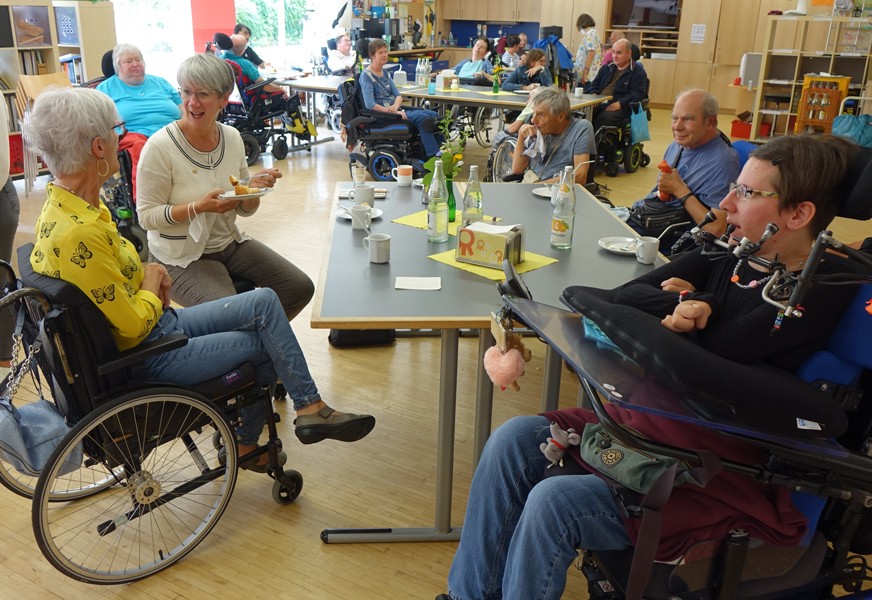 Sie war zuletzt hier, weil sie mit Bewohnern das hiesige Bussystem testen wollte, um so herauszufinden, welche Defizite es gab. Catherine Kern fragte uns, ob sich zu diesem Thema etwas verändert hat, aber leider hat sich wenig getan. Zwar werden nun fast nur noch barrierefreie Busse eingesetzt, was für die Bewohner zwar sehr von Vorteil ist, aber pro Fahrt darf nur ein Rollstuhlfahrer mitgenommen werden.