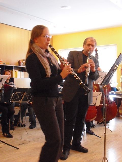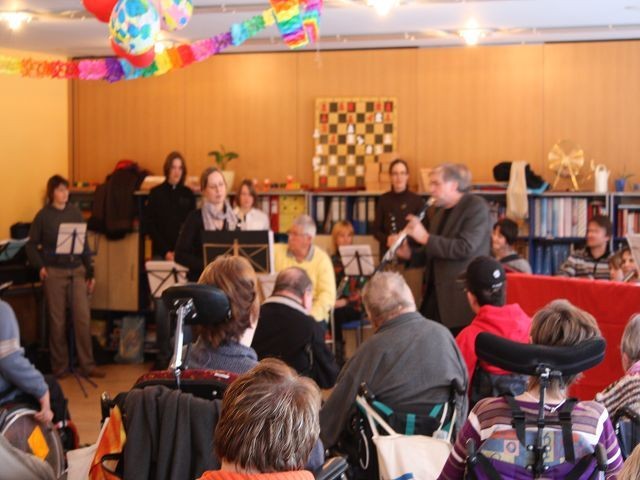 Neben zahlreichen Bewohnern fanden sich auch einige Gäste zu dem öffentlichen Konzert im gut gefüllten Veranstaltungsraum des Eduard Knoll Wohnzentrums ein. Schließlich mischten sich die Musiker unter das Publikum und lieferten ein einstündiges Konzert gespickt mit Klezmer-Melodien.