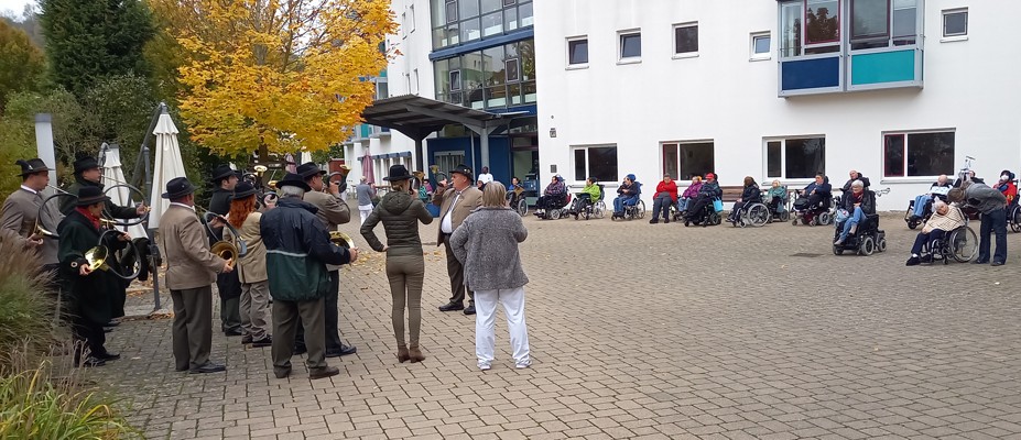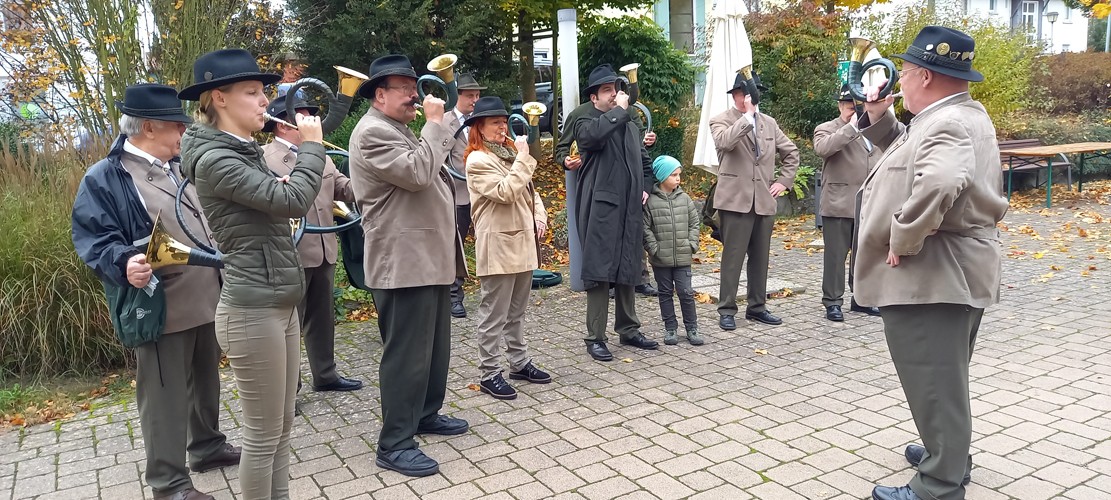 Der Herbst zeigte sich von seiner schönsten Seite, als am Sonntag, den 17. Oktober 2021 Mitglieder der Jagdhornbläsergruppe der Kreisjägervereinigung Künzelsau wieder einmal zu uns in´s Wohnzentrum kamen.