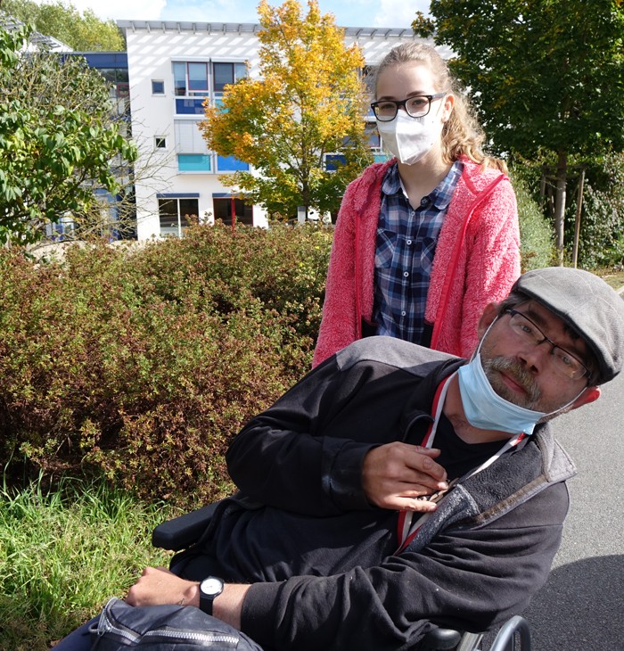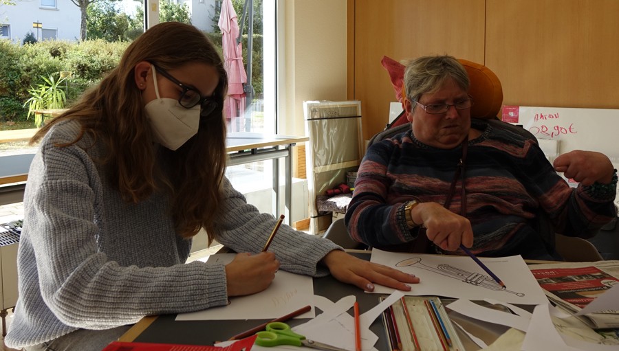 Hallo, wir sind Anne und Jule. Wir sind in der 9. Klasse und haben ein einwöchiges Sozialpraktikum im Eduard Knoll Wohnzentrum in der Tagesstrukturierung gemacht, die hier E.R.G.O. genannt wird. Das Wohnzentrum ist sehr schön, offen und individuell gestaltet mit bunten Farben und Deko. Die Menschen dort haben uns freundlich und offen begrüßt und waren froh über eine Abwechslung. Wir fanden es schön, dass dort die Atmosphäre locker ist und sehr viel gelacht wird.