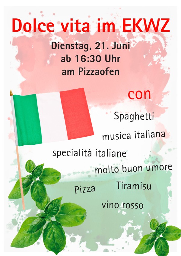 Liebe Bewohner*innen wir laden euch herzlich ein, einen wunderschönen Nachmittag und Abend im Ristorante EKWZ zu verbringen. Ergattert einen schönen Platz auf unserer Terrasse direkt am Pizzaofen oder unter Bäumen.