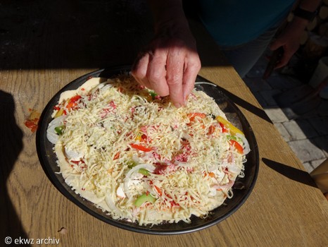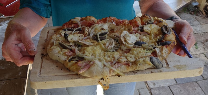 Wer beim ersten Getränk und Bruschetta noch keinen Apetit bekam, wurde spätestens beim Lesen der Speisekarte hungrig. Neben Pasta mit der Auswahl frutti di mare, Bolognese und Napoli war die Holzofenpizza besonders verlockend. Besonderer Respekt gilt den Pizzabäckern, die unermüdlich am heißen Pizzaofen frische Pizzen zubereiteten und dabei jeden Wunsch erfüllten.