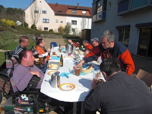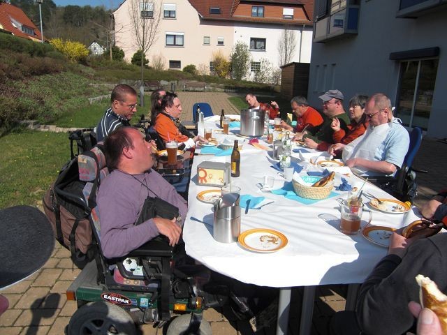 Zu dieser frühen Stunde kam die Sonne erst langsam zum Vorschein. Dadurch war es noch ziemlich frisch. Die netten Mitarbeiterinnen stellten die Tische auf Wunsch von uns Bewohnern weiter in den Sonnenkegel. Somit stand einem gemütlichen Vormittag dann wirklich gar nichts mehr im Wege.