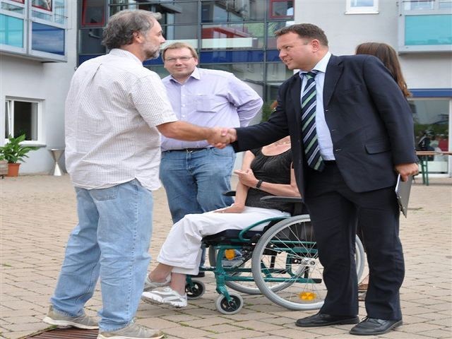 Der Bundestagsabgeordnete Martin Gerster (SPD) aus Biberach besuchte zusammen mit dem Sprecher vom Netzwerk selbstaktiv Baden-Württemberg Walter Friedrich Leyh das Wohnzentrum. Sie wurden vom Geschäftsführer Norman Weyrosta, dem BSK-Geschäftsstellenleiter Ulf Schwarz sowie zwei Mitarbeiterinnen der Öffentlichkeitsarbeit des Wohnzentrums begrüßt.
