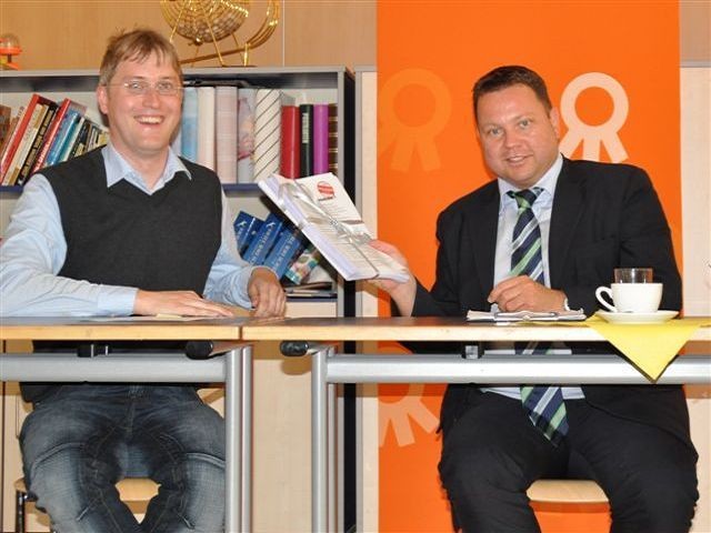 Zum Thema Kopfpauschale übergab Ulf Schwarz eine Unterschriftenliste an Martin Gerster. Dieser versprach auch, diese mit in den Bundestag zu nehmen.
