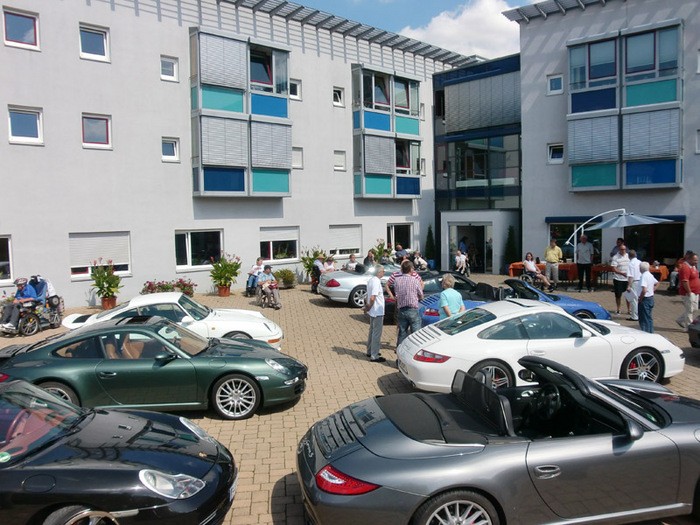 Am Samstag, den 21. August 2010 standen ab 13:45 Uhr 15 Porsche und ein Mercedes SLK im Hof des Eduard-Knoll-Wohnzentrums.