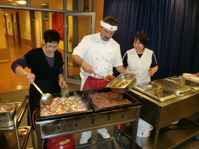 Ein Lob möchte ich auch an unseren Chefkoch richten, der jedes Themenfest in diesem Jahr mit entsprechend landestypischen Spezialitäten verfeinerte. Zudem wollen wir auch die Helferinnen in der Küche würdigen, ohne die unser Koch nicht all diese internationalen Speisen servieren könnte.