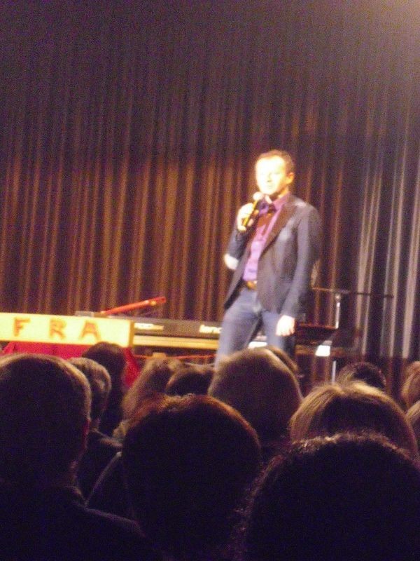 Punkt 20:00 Uhr kam Willy Astor aus einem Seiteneingang des Saals. Zunächst stellte er sich dem Publikum vor. Er machte sich über unsere Heimat lustig und war über unseren Dialekt, und zum Beispiel über eine Ortsangabe „den Buckel hoch und runter“ sehr verwundert. Willy Astor spielte mit dem Publikum und machte sich immer wieder über die örtlichen Begebenheiten lustig. Doch auch in seinem eigentlichen Programm „Tonjuwelen“ war viel Lustiges und meiner Ansicht auch Wahres dabei. Während des Programms wurde auch klar, dass Willy Astor gute Texte und Songs schreiben kann. Er machte auch zwischendurch immer wieder Scherze mit seinem Tontechniker, den er schon lange zu kennen scheint.