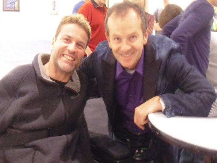Schon in der Pause krallte sich Jürgen Milewski Willy Astor, ließ die Masken unterschreiben, und sich mit ihm fotografieren. Er vereinbarte dass wir nach dem Programm noch Bilder mit der gesamten Gruppe schießen. Willy Astor erklärte sich auch sofort dazu bereit.
