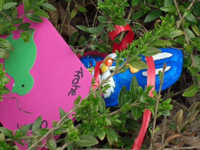 Doch vorher hieß es auf Hasensuche zu gehen. Hierzu waren die Schokoladenhasen in der nahe liegenden Hecke versteckt worden. Nach einer Weile waren Hasen für alle zahlreich erschienenen Bewohnerinnen und Bewohner gefunden.