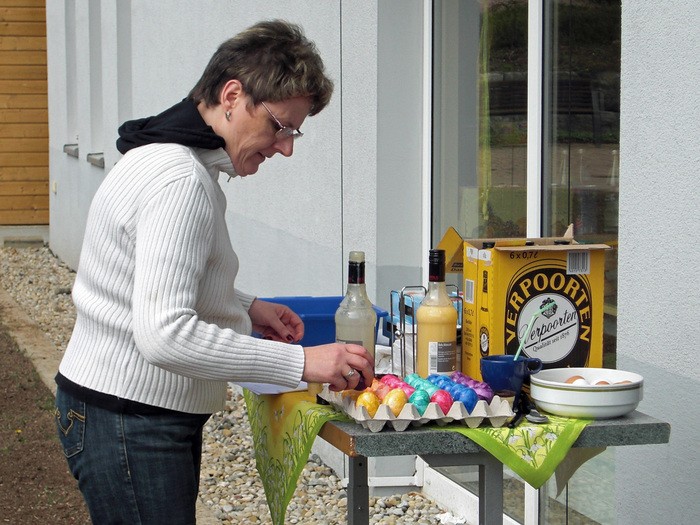 Und es standen bunt gefärbte Eier bereit, die für den Eierlauf gebraucht wurden.