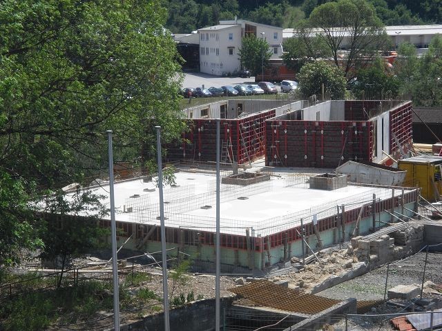 Im Moment kann man beobachten, wie der Rohbau entsteht.