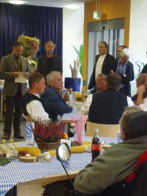 Am Dienstag, den 11. Oktober kamen wir aus dem Feiern gar nicht mehr heraus. Nachdem wir vom Richtfest unseres Neubaus „Betreutes Wohnen“ kamen, erwartete uns schon ein oktoberfestmäßig geschmückter Raum. Viele kamen, um auch noch die Rede unseres Bürgermeisters Andreas Köhler zu hören. Auch einige Handwerker von unserer Baustelle waren dabei.