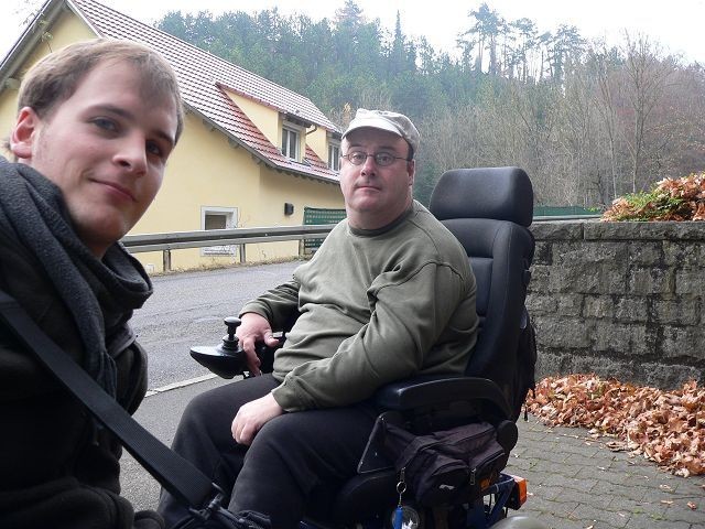Kennengelernt haben wir uns beim diesjährigen Reiseassistenten-Workshop zwischen dem 14. und 20. November. Auch Cory nahm teil. Unter anderem bekamen die Teilnehmer einen Einblick in den Umgang mit dem Rollstuhl. Der „kleine, verrückte“ Cory war davon anscheinend so begeistert, dass er mir sagte, dass er gerne mal mit dem Rollstuhl zur Burg fahren würde. Ich dachte mir gleich: „Der hat ‚nen Knall“. Natürlich sagte ich ihm das nicht, sondern fragte nur, ob er wisse, worauf er sich da einlasse? Er meinte nur: “ Naja, das wird schon gehen“.