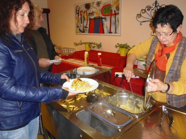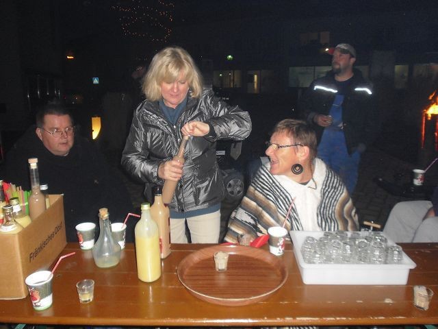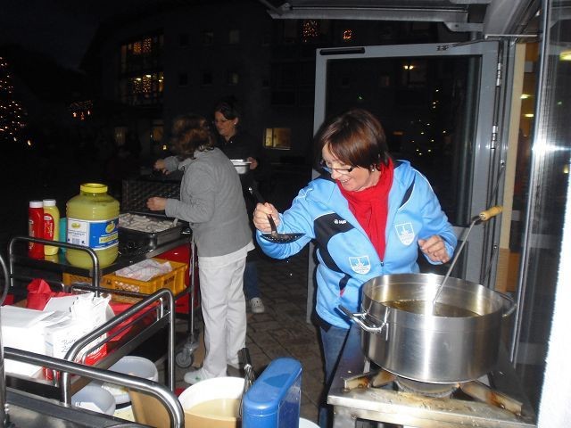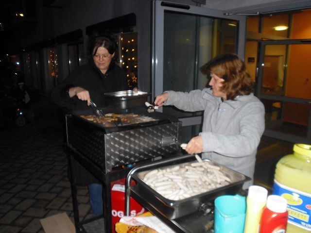 Auch für das leibliche Wohl wurde bestens gesorgt. In der Küche wurden Bratwürstle, Sauerkraut und Schupfnudeln zubereitet und zum „Einheizen von Innen“ gab es Glühwein und alkoholfreien Punsch. Auch selbstkreierte Liköre von Elisabeth Philipp waren im Ausschank. Zum Nachtisch wurden Rosenküchle frisch gebacken, die warm gegessen, am besten schmecken. Den Teig hat uns wieder Helena, die Kontakt zum Kulturverein Schöntal hat, mitgebracht. Ein herzliches Dankeschön dafür, dass wir auch dieses Jahr wie schon in den vergangenen Jahren mit dieser Spezialität verwöhnt wurden.