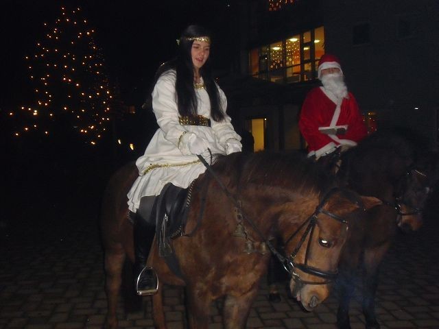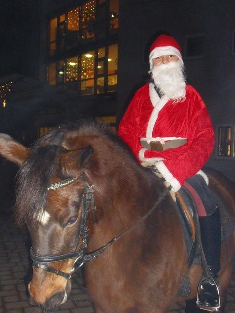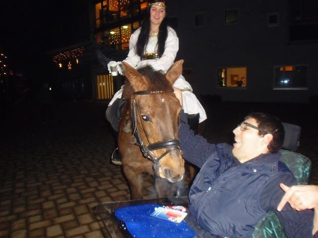 Wieder ist ein Jahr vergangen, und schon steht Weihnachten vor der Tür. Das Außengelände des Wohnzentrums wurde schön weihnachtlich geschmückt. Und so kam es, dass der Nikolaus auch hier nicht vorbeireiten konnte. Er wurde mit seinem treuen Begleiter, beide hoch zu Ross, auf dem Hof willkommen geheißen: