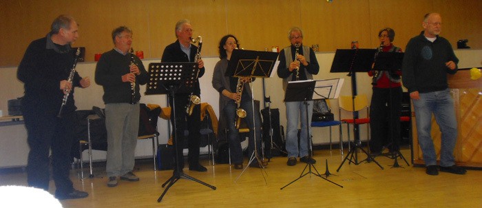 Nun schon zum 3. Mal öffnete das Eduard Knoll Wohnzentrum seine Türen für Klezmer-Musik. Menschen aus dem Wohnzentrum und aus nah und fern konnten sich am Freitag, 17. Februar 2012 auf eine schöne musikalische Stunde mit dem Klarinettisten Helmut Eisel und den Mitgliedern seines Klezmer-Workshops freuen.