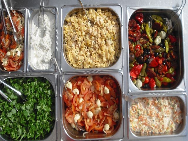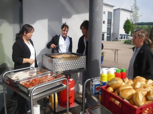 Und natürlich sollte der Gaumen auch nicht zu kurz kommen. Grillen war angesagt und so wurde auch gegrillt. Vor dem Fenster konnte man die fleißigen Küchendamen beobachten, wie sie die Steaks und Würstchen zubereiteten. Die Helfer servierten dann bunte Teller mit vielen verschiedenen Salaten.