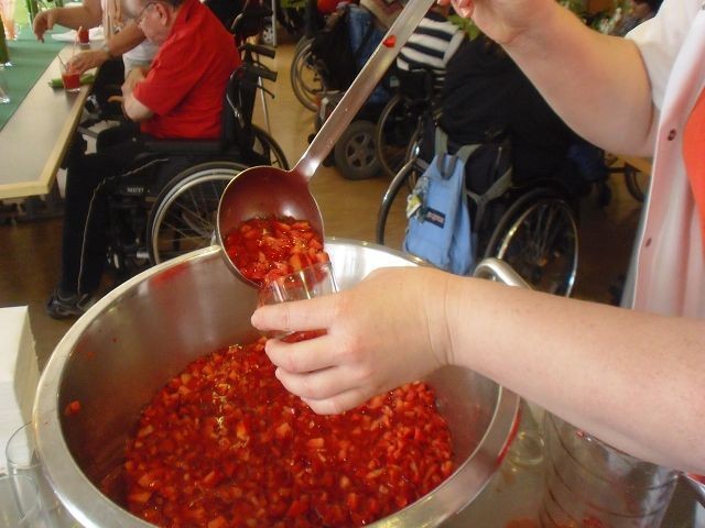 Zur kulinarischen Einstimmung wurden alle mit einer Erdbeerbowle verwöhnt. Die Biertrinker freuten sich dann auf ein frisch gezapftes Bier.