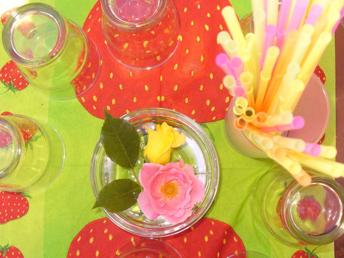 Auf den Tischen stand Erdbeerbowle, Erdbeerkuchen mit Sahne und Erdbeermilch.