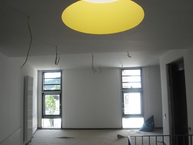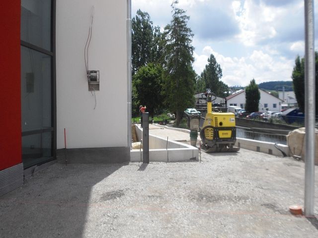 Im Inneren der Gebäude werden gerade die Fußböden verlegt und an einigen Stellen kommt Farbe ins Spiel.