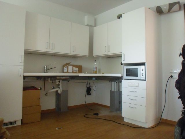Dafür können wir Euch aber mit sonnigen Bildern der Außenaufnahme belohnen, sogar der Bauzaun ist jetzt weg. Und innen gibt es schon die ersten Küchen zu besichtigen.
