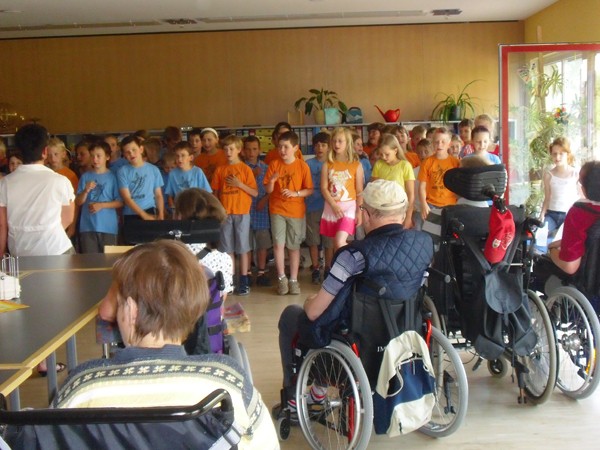 Schüler der 3. und 4. Klasse der Grund- und Hauptschule Krautheim verlegten ihre Musikstunde in das Eduard Knoll Wohnzentrum.
