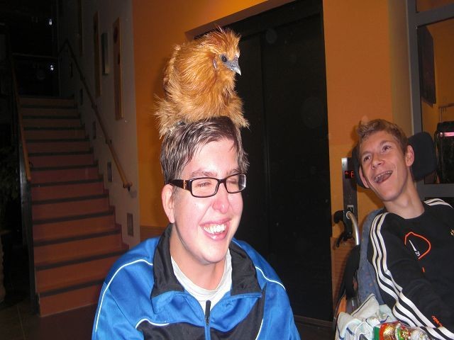 Neben diesen alltäglichen Einsätzen, war ich auch öfter bei besonderen Ereignissen dabei. Zum Beispiel, wenn immer am ersten Mittwoch im Monat die Hundefreunde Assamstadt ins Eduard-Knoll-Zentrum kommen. Aber nicht nur große und kleine Hunde kommen zu Besuch und lassen sich gerne streicheln, vor allem weil es Leckerli dafür gibt, ab und zu kommen auch Mäuse oder Hühner zu Besuch. Für alle Beteiligten ist das immer ein großes Ereignis und so mancher Bewohner vergisst dabei, dass er eigentlich Angst vor Hunden hat.