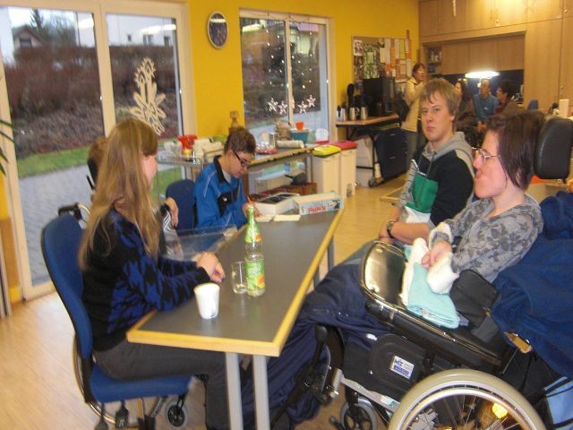 Hauptsächlich wurde ich in der Abteilung Tagesstrukturierung eingesetzt. Dort treffen sich viele Bewohner zwischen den Mahlzeiten zu gemeinsamen Tätigkeiten oder zu ganz speziellen Angeboten für Einzelne. Ich habe oft mit einer Gruppe jüngerer Bewohner Gesellschaftsspiele gemacht. Zu meinen Aufgaben gehörte es aber auch, beim Essen zu helfen oder Bewohner sonstwie zu unterstützen.