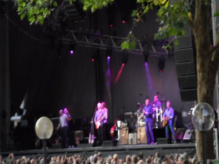 Ziemlich genau um 20:00 Uhr ging es dann los. Es war allen Besuchern schnell klar, dass Mark Knopfler aus Schottland kommt. Er trug nämlich eine Jacke mit der schottischen Fahne. Je länger das Konzert dauerte, desto mehr fühlte zumindest ich mich wie in den schottischen Highlands. Die altbekannten Hits waren live einfach nochmal eine Spur grandioser und sorgten immer wieder für Gänsehaut. Insgesamt spielte Mark Knopfler bis etwa 22:00 Uhr ohne nennenswerte Pausen. In der Zeit, in der Mark Knopfler nicht auf der Bühne war, hatte einer seiner tollen Musiker seinen Auftritt. Dabei war zum Beispiel ein Cello. Dass man die so virtuos und rockig spielen kann, war mir nicht klar. Auch das Solo einer Klarinette fand ich sagenhaft. Hier kam sie dann immer wieder, die Gänsehaut. Und nach einigem „Zugabe, Zugabe“-Rufen ließ sich Mark Knopfler mit seiner, bei jeder Tour neuen, Band noch zu weiteren Songs hinreißen