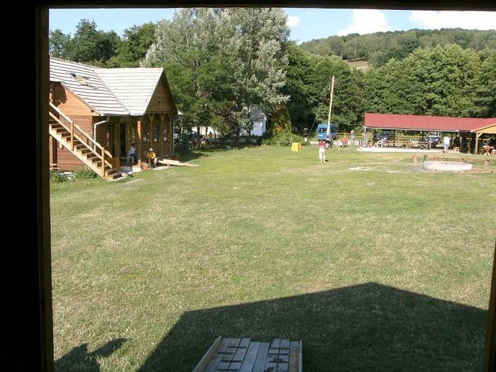 Voller Erwartung kamen wir um ca. 5:45 Uhr im Camp an. Dies war der Zeitpunkt, an dem uns trotz Müdigkeit zum ersten Mal der Kloß im Hals stecken blieb. Ich denke, keiner von uns erwartete, dass das Camp-Gelände eine wild bewachsene Wiese war. Ich bin mir nicht sicher, aber ich glaube, einen Rasenmäher hat diese Wiese selten bis nie gesehen. Nun gut, nachdem wir aus dem Bus ausstiegen waren und uns auf den Gras- und Schotterwegen orientiert hatten, wurden wir von der Hauswirtschafterin und dem Koch empfangen und begrüßt. Auch unser freundlicher „Abhol-Atilla“ hieß uns noch mal herzlich willkommen. Als er 2010 zusammen mit Róbert beim Reisehelferkurs war, konnte er noch kein Wort Deutsch. Umso erfreuter waren wir, als er uns schon am Flughafen in unserer Landessprache begrüßte.