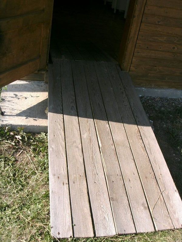 Zunächst sahen wir nur einige herumwuselnde Malteser Freiwillige, die in den anderen Hüttchen jeweils zwei doppelte Stockbetten herrichteten. Irgendwann am Mittag kamen auch Jugendliche, die an jedes Haus eine selbstgezimmerte Rampe hinlegten. Die Rampen bestanden aus fünf zusammengenagelten, unterschiedlich langen Holzbrettern. Damit die Rampen nicht einstürzen, wurden sie mit mehr oder weniger gleichmäßigen Baumstümpfen unterstützt. Uns Dreien wurde es heiß und kalt wenn wir daran dachten, dass da Rollstuhlfahrer, egal ob mit Schiebe- oder E-Rolli, hochfahren sollten. Vor allem waren die Rampen auch noch richtig steil. Wir waren froh, dass wir schon in unserem vermeintlich vorläufigen Haus eingezogen waren.