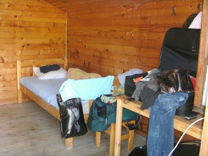 Doch wie das Leben oft so spielt kommt es erstens anders und zweitens als man denkt. Irgendwann am Nachmittag bat uns Róbert wieder aus dem liebgewonnenen Haus auszuziehen, weil es für eine größere Gruppe vorgesehen war. Er ließ uns netterweise frei entscheiden, in welches Holzhäuschen wir einziehen wollten. Alle anderen Hütten sahen von außen gleich aus und wir entschieden uns für das nächstgelegene mit der Hausnummer 5. Thomas musste all unsere bezogenen Bettdecken und Koffer in das neue Häuschen bringen.