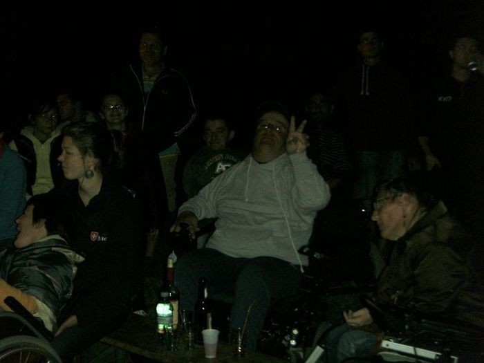 Doch erst Mal hatten wir den Vormittag zur freien Verfügung. Manch einer nutzte die Zeit einfach zur Körperhygiene. Ich selbst setzte mich mal wieder an das Haupthaus, wo all die anderen auch saßen. Manchmal fuhr ich mit meinem Rollstuhl über die Wiese. Und wenn ich sah, dass irgendjemand Fußball oder Federball spielte, schaute ich da zu. Wie immer, gab es dann um 14:00 Uhr Mittagessen. Nach dem Anfangsgebet, dem zügigen Essen und dem Schlussgebet verkündete unser Somar noch, dass wir heute einen Karaoke-Abend vor uns hatten.