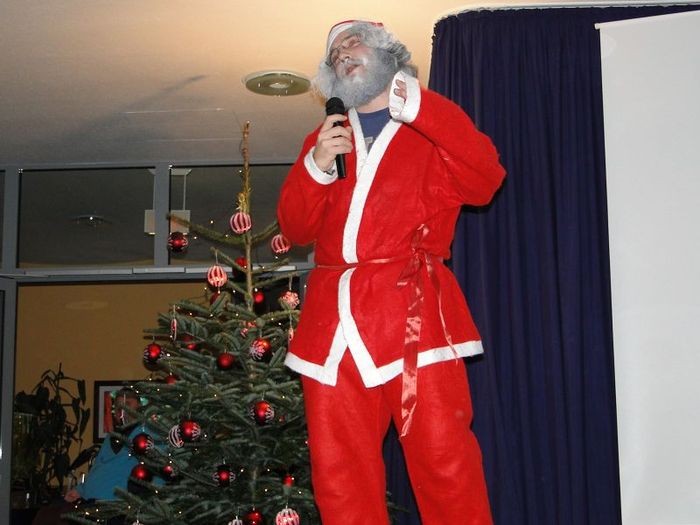 Jürgen, unser Weihnachtsfeiermoderationsprofi war der erste auf der Bühne er begrüßte das Publikum und führte wieder locker und flockig durch das gesamte Programm. Zu Beginn überraschte er gleich unseren Mitarbeiter Volker, in dem er den ganzen Saal zum Geburtstagsständchen singen animierte.