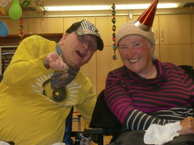 Am Nachmittag trafen nach und nach noch mehr Bewohner ein und ab 17:00 Uhr wurde es dann richtig voll. Zunächst gab es Musik aus der Konserve, d.h. vom CD-Player, die uns zum Mitsummen, Mitsingen und Mitschunkeln animierte. Der Eine oder Andere schwang schon da sein Tanzbein oder seinen Tanzrolli.