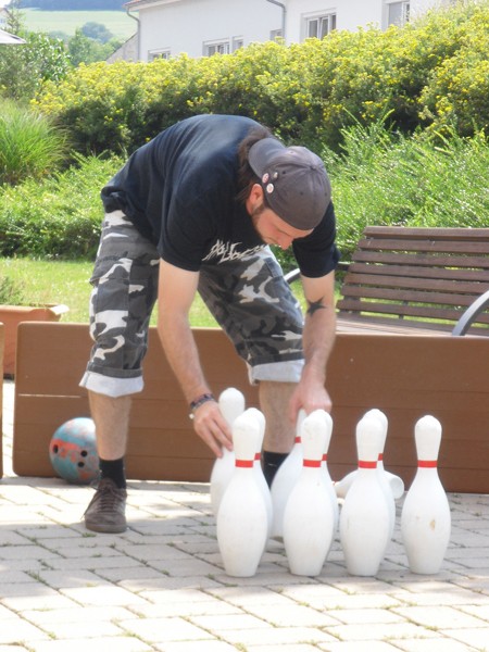 Auf dem Gelände des Eduard Knoll Wohnzentrum begann um 14.00 Uhr ein Sportfest mit den Disziplinen Kegeln und Tischtennis: Eigentlich war auch Boccia vorgesehen, aber dadurch, dass es an diesem Tag sehr heiß war, wurde darauf verzichtet.