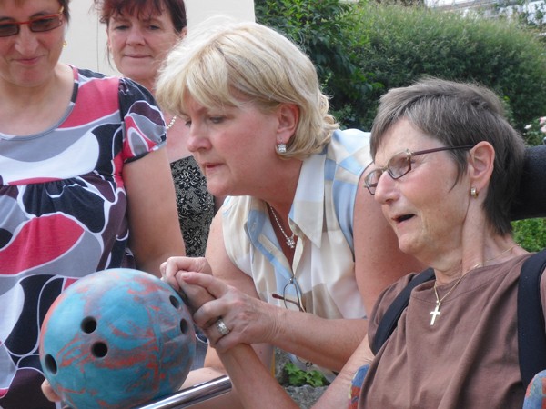 Ein besonderes Dankeschön an die Ergo-Damen, die das Sportfest organisiert haben und die Zivis unseres Hauses, die in der sengenden Sonne immer zur Stelle waren, um Kegel aufzustellen, Tennisbälle einzusammeln oder um den Bewohnern behilflich zu sein.