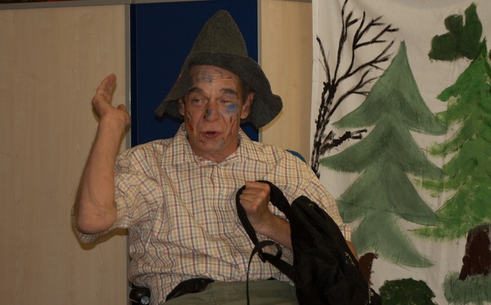 Endlich war es soweit, das seit Oktober geprobte Theaterstück „die Krautheimer Stadtmusikanten“ wurde unter der Regie von Regina Achatzi aufgeführt. Die vielen Zuschauer aus dem Haus konnten ein Bühnenbild bestaunen, das sehr einfallsreich von Nadine Deuser gestaltet war. Eine gespannte Wäscheleine und bemalte Leintücher reichten den Akteuren für die verschiedenen Szenen als Hintergrund und Seitenausgang.