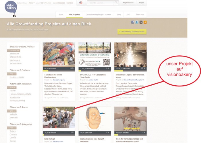 Es ist ganz einfach aber genial. Wenn man eine gute Idee hat, aber das eigene Geld zur Verwirklichung nicht reicht, stellt man die Idee anderen vor und die können das Projekt finanziell unterstützen. Die Unterstützer bekommen aber auch eine Gegenleistung, ein kleines Dankeschön. Gelingt es, innerhalb eines festgelegten Zeitraums den nötigen Betrag zu sammeln, kann das Projekt verwirklicht werden. Falls der Betrag nicht zusammen kommt, bekommen die Unterstützer ihre Spende zurücküberwiesen.
