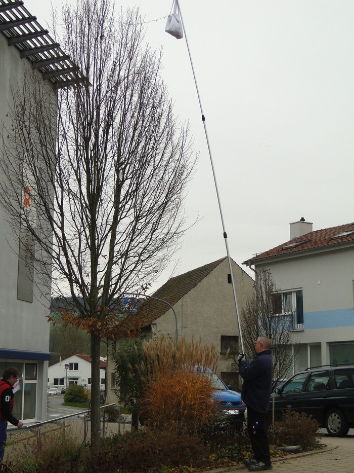 Der Countdown hat begonnen. Jetzt sind es nur noch ein paar Wochen bis zum 24. Dezember. Auch wir im Wohnzentrum wollen alles schön weihnachtlich dekoriert haben. Als erstes konnte ich beobachten, wie unsere Hausmeister draußen, einige Lichterketten an einzelnen Bäumen auf dem Grundstück befestigten. Dank ihrer trickreichen Erfindung brauchten sie nicht einmal eine Leiter. Ich bin gespannt, wie alles aussieht, wenn die Beleuchtung am Wochenende zum ersten Mal im Dunkeln erstrahlt. Danach durften die Hausmeister an den Fenstern vom Speisesaal, der Tagesstrukturierung (ergo) und den Treffpunkten für Bewohner im ersten und zweiten Stock Lichtgirlanden anbringen.