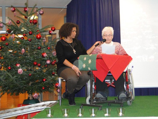 Eine von Regina Rudolph selbstgeschriebene Weihnachtsbildergeschichte holte uns wieder in die Feier zurück. Bewohner und Mitarbeiter aus verschiedenen Nationen vermittelten uns durch Bild und Text das Gefühl für das Miteinander der Menschen auf der ganzen Welt.