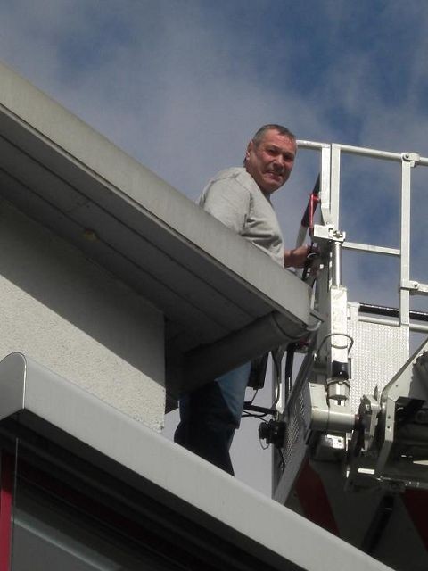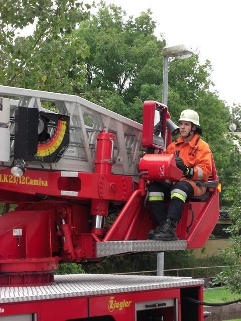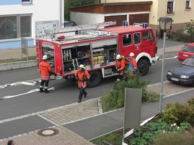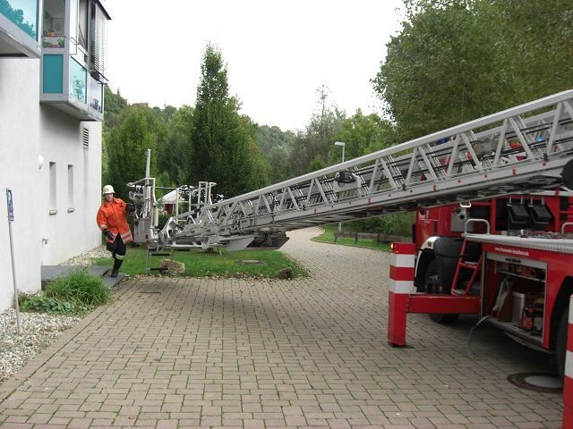 Die Übung selbst klappte gut, auch die große Drehleiter kam zum Einsatz um einen "Verletzten" vom Dach zu retten.