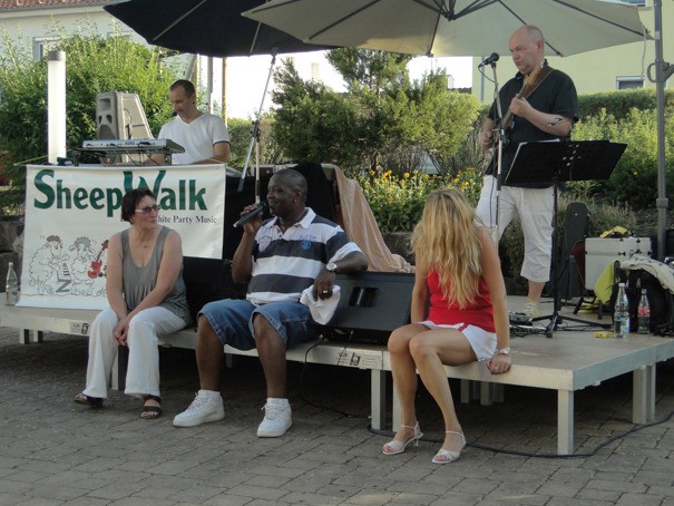 Zwischenzeitlich hatte die Gruppe SheepWalk mit dem Lied „Ain‘t no Sunshin any more“ zu spielen begonnen, danach folgte Lied für Lied. Sie machten tolle Musik und die super Stimme ihres Sängers Frank Riley tat sein Übriges dazu, dass man zwischendurch trotz der Temperatur eine Gänsehaut bekam. Im Repertoire hatten sie Songs von Joe Cocker, Elvis, Louis Armstrong, und noch vielen anderen mehr.